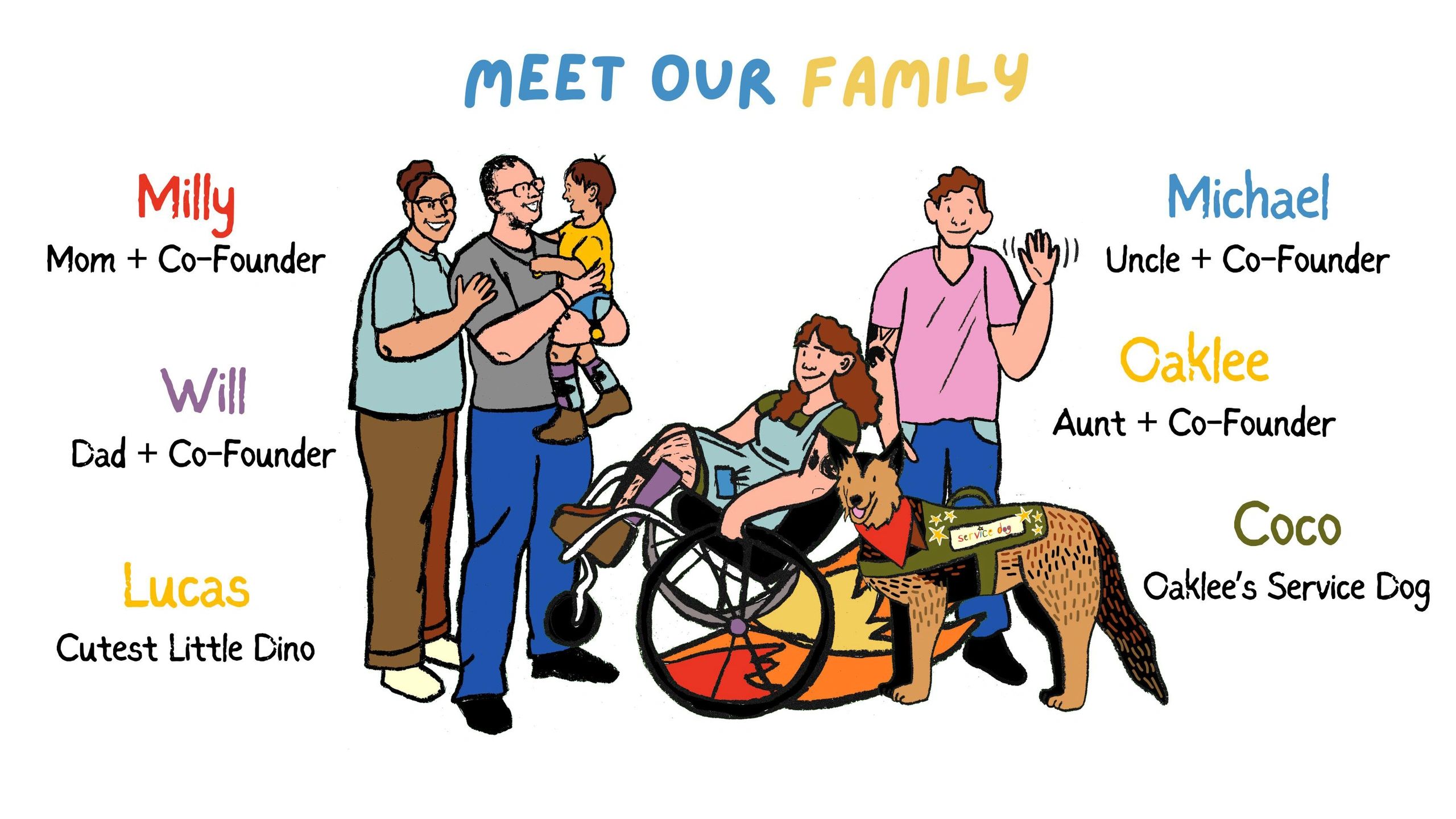 Little Dinos began with a simple idea: kids deserve disability representation that celebrates who they are. In 2022, our son Lucas was born. As new parents navigating disability for the first time, we had many questions about how to raise a child with pride in their identity. We wanted Lucas to grow up surrounded by community, confidence, and love, not pity, limits, or outdated assumptions.